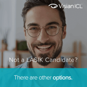 Visian ICL is an Implantable Collamer® Lens that offers many benefits, especially for patients who cannot have LASIK due to a high level of myopia (nearsightedness), thin corneas or dry eye. Visian ICL does not cause dry eye symptoms, which can be a concern with LASIK.[1] Visian ICL also offers UV protection and has a superb patient satisfaction rate.[2]